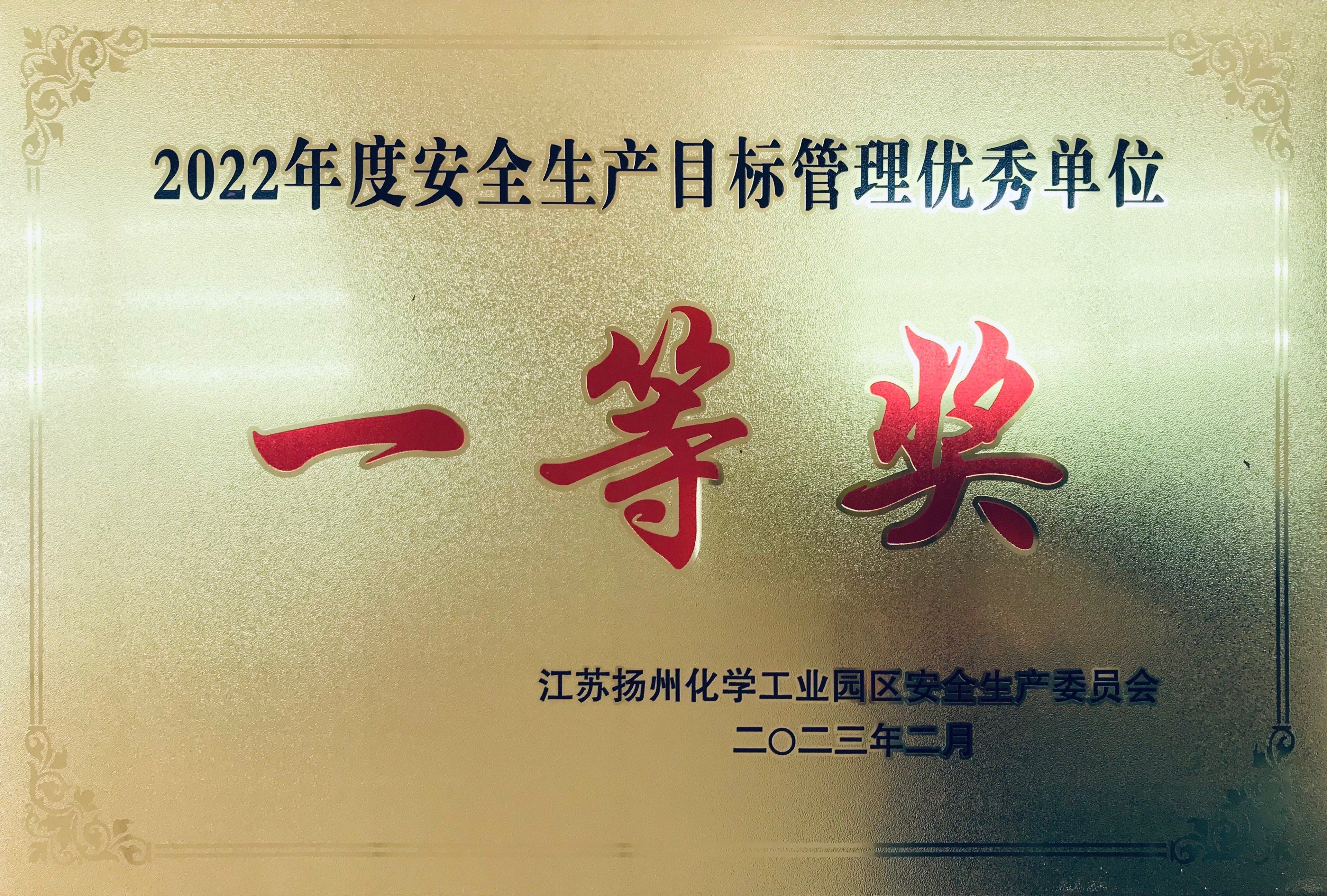 2023年2月16日儀征市同泰鋁業(yè)有限公司獲得江蘇揚州化學(xué)工業(yè)園安全生產(chǎn)委員會(huì )“2022年度安全生產(chǎn)目標管理優(yōu)秀工貿企業(yè)”一等獎。